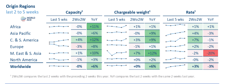 Air cargo rates have continued to rise in the lead-up to Black Friday and Thanksgiving, driven by further increases in spot prices from Asia Pacific to the United States and Europe, according to the latest figures from WorldACD Market Data. Intra-Asia tonnages and rates have also increased.